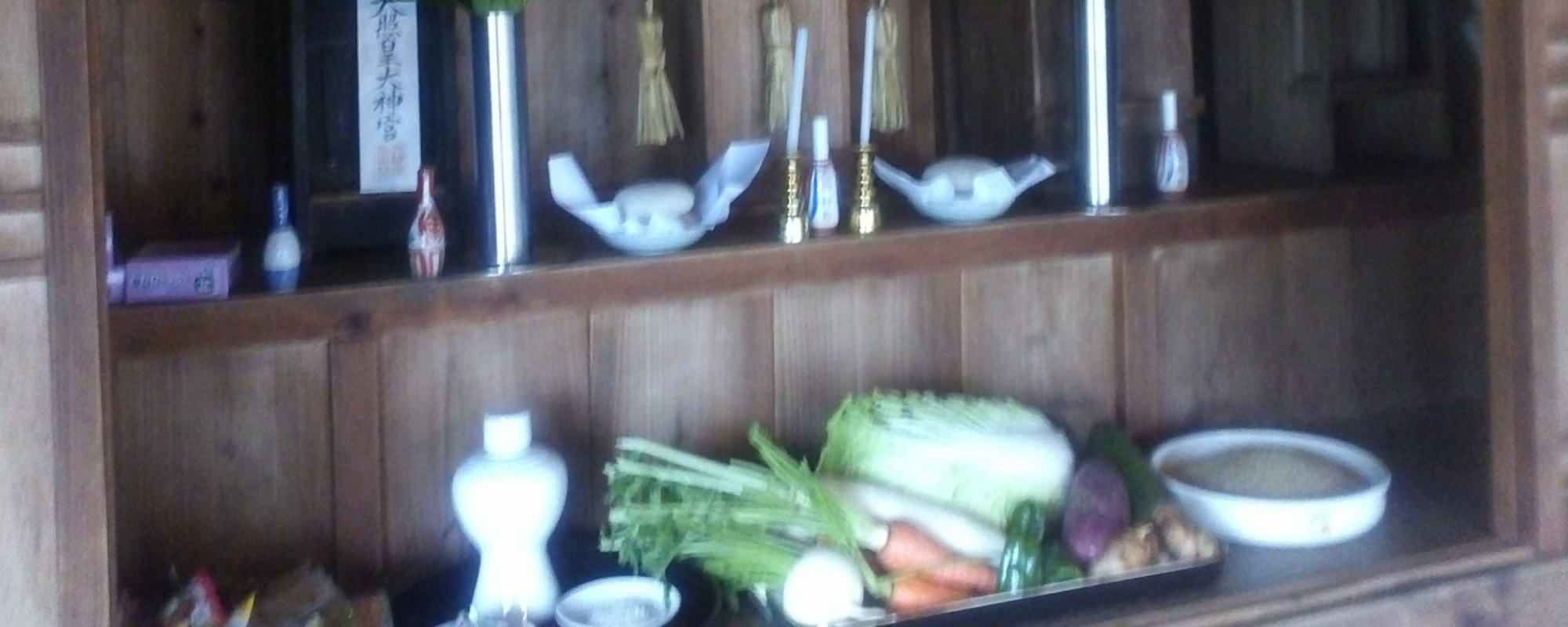 御神酒・洗米・玄米・野菜・魚・塩・弊串