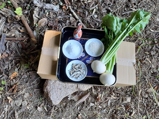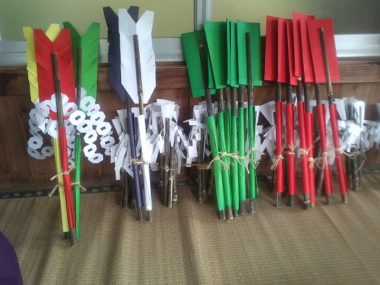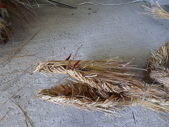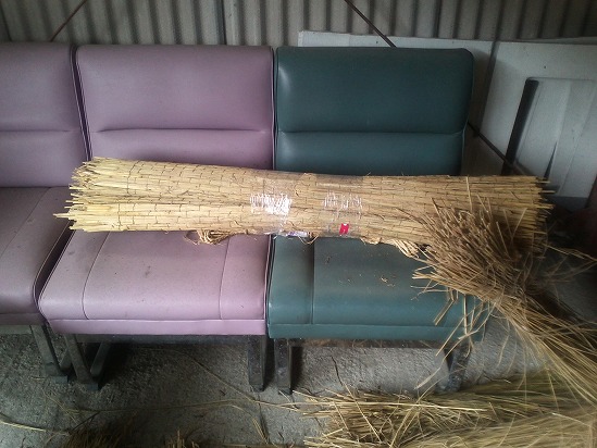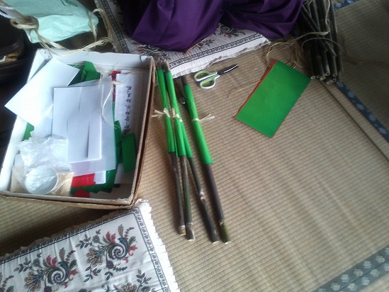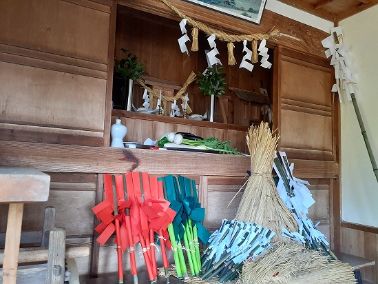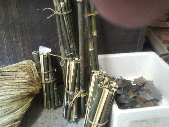 準備品 ・購入品―――薦(こも)4枚(俵分を含む)、五穀米等、半紙 ・餅類(白小餅 77個、お供え餅 二膳)(いきいきセンターに注文) ・1円玉77円 ・しめ縄 二十ひろ位 1つ(神木を囲むもの) ・金物77個(鋳物が良い) ・古鎌1個 *障子紙、染紙(緑 12枚、赤 12枚、黄 1枚、紺 1枚)、麻は宮司様が用意してくれます。
